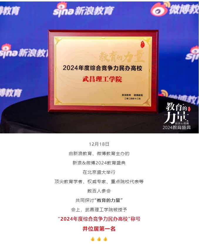 头条 | 祝贺!武昌理工学院获评2024年度中国标杆型民办高校!