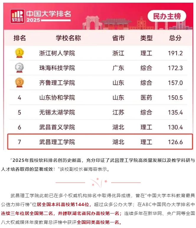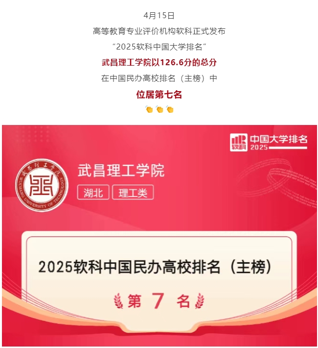 头条|最新排名出炉!武昌理工学院荣登全国第七!